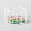Add this Wire Storage Basket from Pillowfort™ to your kid's space to help keep it organized. Made with metal, this storage basket showcases a wired design that helps them easily see the contents. It comes with an open top for easy access to the items, while the built-in oval handles make it easy to move around spaces. Perfect to fit in a shelf or to place on the floor with the flat bottom, this navy storage basket provides ample space for their toys, accessories and other items to help keep their room neat and tidy.