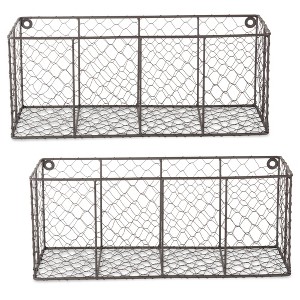 Medium Vintage Grey Wall Mount Chicken Wire Basket Set/2