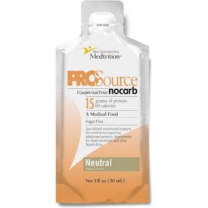 Support daily nutrition with Medtrition ProSource No Carb Liquid Protein, a concentrated 1 oz packet designed for individuals needing high-quality protein without added carbohydrates, fat, or sugar. Each single-serve pouch provides a medical-grade blend of hydrolyzed protein for quick absorption and efficient muscle support. Ideal for those with increased protein requirements such as post-surgical patients, older adults, or individuals with limited appetite this neutral-flavored formula mixes easily with foods and beverages or can be taken directly. The convenient, ready-to-use packet format makes it perfect for hospitals, long-term care settings, or home nutrition management. ProSource delivers reliable, targeted protein support to help maintain muscle mass, recovery, and daily wellness.
