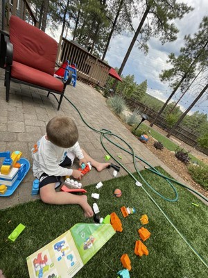 [This review was collected as part of a promotion.] Fantastic block set - great for little hands! My 4 year old loves playing with it. The instructions were very easy to follow and he loves helping build everything. The cans that go into the truck and boat are easy for little hands to place in and take out and he loves pushing "trash" down the chute and into the cans. The whale blocks add to the fun.