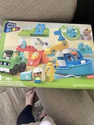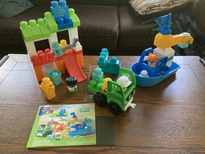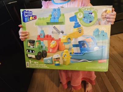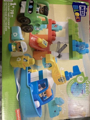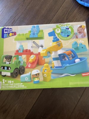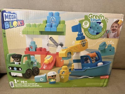 MEGA BLOKS Fisher‑Price Green Town Ocean Time Clean Up Building Blocks Set 70 Pieces 3 Character Figures for Eco‑Friendly Toddler Play