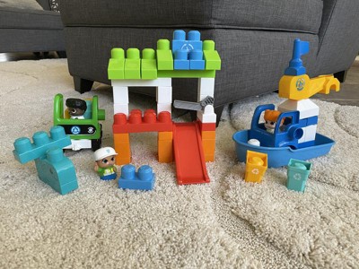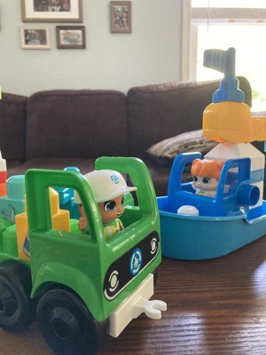 [This review was collected as part of a promotion.] My son loves garbage trucks and just trucks in general. This “green town” set with an eco focus has a recycling truck with different bins for recycling. There are also little blocks with different items that can be recycled. The set comes with a cute boat as well. My 4 year old loves the set!