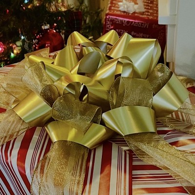 Decorated our door this year like a “present” and used this bow for the middle. Loved how it turned out!