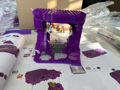 [This review was collected as part of a promotion.] What an amazing set! It's absolutely huge with awesome details! So my son is no where near done, even after working on quite a bit. It's definitely a project, I love that he has something to keep him occupied! My kiddo loves building these type of things and he thought it looked awesome even without knowing the characters. He was thrilled to get such a big set and he and his friend think "it's one of the coolest builds ever" so he is really enjoying working on it in his free time. The entire box is huge and honestly, so cool with the close ups of the build that my kid is keeping the box. It's split into 2 sub boxes with an instruction book for each (each with an art sleeve) so that you don't have a ton of bags to sort through. My husband fondly remembers He-Man and while my son didn't know He-Man before, we have been getting more family time in watching it all together and helping kiddo build the castle. It definitely brought the set more to life for him. My son has had a slight problem getting some of the bricks to click together fully which can frustrate him from time to time and cause a bit of instability. And since it's so purple, it can be a bit challenging finding the correct pieces and discern which piece of which shade he's looking at in the booklet. I feel like some of the detail pieces on the outside fall off a little bit too easily as well while he's still building. We both thought the soft vines were really cool as well as the fact that a fair few of the spikes where on swivel bricks so they could be moved around easily to "style" as desired.
