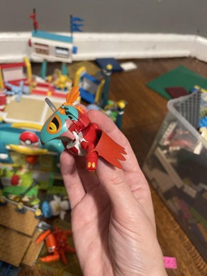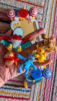 [This review was collected as part of a promotion.] We were so excited about this set! The photo is a little misleading as it appears to be a two level set, but that’s not a big deal as it was a perspective shift. My son enjoys this set and loves having so many little Pokemon figures included. One of the figures’ wings ripped very easily so he has to pinch the rubberized piece between two blocks to allow the cape/wings piece to stay secured. Also the set doesn’t allow for the proper shooting, as described by my son. The pieces become dislodged easily taking away the ability to preform the action. Otherwise, my son enjoys this set, thought it was easy to build and has since purchased additional companion sets to additional play.