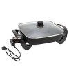 The MegaChef Electric Skillet in Black is a versatile and high-performance kitchen appliance that makes cooking a breeze, whether you're preparing a quick weeknight meal or hosting a family gathering. With a spacious cooking size of 11.81 x 11.81 x 2.36 inches, this electric skillet offers plenty of room for frying, sautéing, simmering, and more. Powered by 1200 watts and operating at 120 volts, it heats up quickly and provides consistent, even heat distribution for perfectly cooked dishes every time. Crafted with a die-cast aluminum pan, the skillet offers excellent heat retention, ensuring even cooking across the entire surface. The two-layer black non-stick coating ensures that your food won't stick, making both cooking and cleanup easier, and reducing the need for excess oils or butter for healthier meals. The durable non-stick surface is designed to last, while allowing for quick and easy cleanup after every use. For added convenience, the skillet features Bakelite handles, which are heat-resistant and ergonomically designed for a secure, comfortable grip. The tempered glass lid lets you monitor your food while it cooks, helping to retain heat and moisture for more flavorful results. The removable temperature control provides precise control over the heat, allowing you to adjust the temperature for different cooking needs, from high heat for searing meats to low heat for simmering sauces or stews. With a generous 29.5-inch power cord, the skillet offers flexibility in placement, so you can set it up in the most convenient spot in your kitchen without being limited by outlet location. Whether you're frying up eggs, cooking vegetables, or preparing a one-pan meal, the MegaChef Electric Skillet in Black is a must-have for anyone who wants a reliable, easy-to-use cooking tool that delivers excellent performance every time.