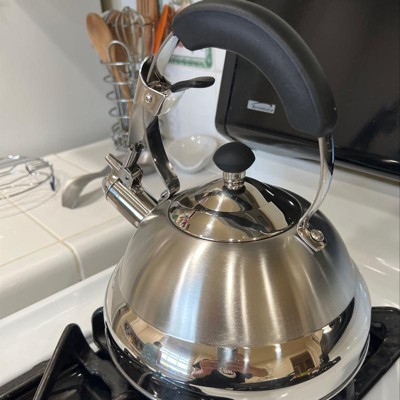 Best tea kettle I’ve tried and I’ve tried quite a few. Love the design, quality and ability to use one hand to hold the kettle, release the spout and pour. I also don’t need to use a hot pad as the black grip on the kettle doesn’t get hot. The whistle also works. And, this is much easier to clean than tea kettles I’ve had in the past. If you’ve been looking for a tea kettle, look no further… This is the one!