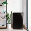 Keep all your food, snacks, beverages and veggies fresh and cool with the MegaChef 3.2 Cubic foot mini fridge in black. Built in freezer at the top keeps a select few items at a colder temperature for your convenience with its top inner door (includes an ice tray and ice scraper). Adjustable shelves allow you to keep items of varying sizes cold easily while the door panel has a built in drink dispenser that holds up to 7 cans at once. Features a knob at top for adjustable temperature control and a recessed door handle. This sleek and compact fridge is ideal for individual bedrooms, dorms, entertainment spaces, offices and everywhere else in between.