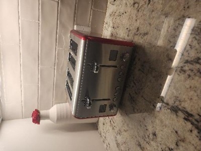 MegaChef 4 Slice Stainless Steel Toaster - Red: 1800W, Automatic Shut-Off, Reheat & Defrost Functions