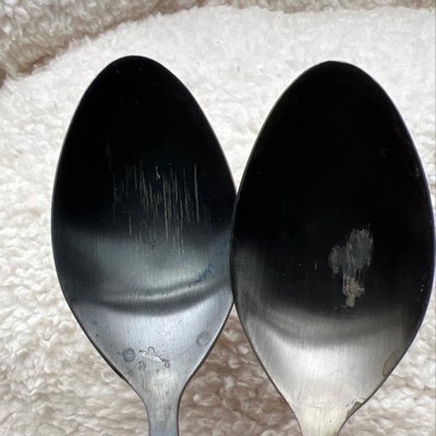Bought this for son's college house. Gave three stars because the size of the utensils is odd. Larger spoon is almost like a serving spoon. smaller spoon is so small it could be used as a baby spoon. Decent weight. Do like the unique black color.