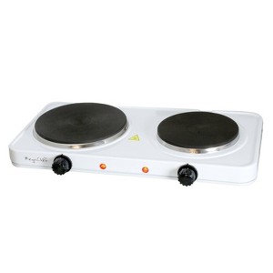 MegaChef Portable Dual Electric Cooktop - White: 1700W Hot Plate for Cooking, Metal, 9x17x2, Includes Manual