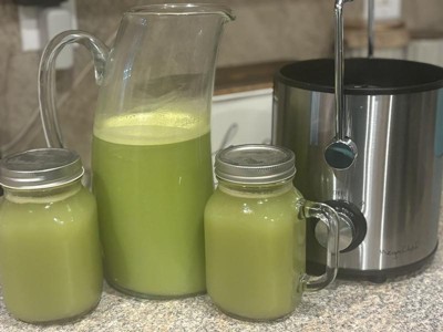 I like that it doesn’t produce pulpy juice. It is very user friendly, easy set up, and easy clean. The brush included cleans the juicing net very well. *The photo with jars/pitcher of juice is after machine is broken down to clean.