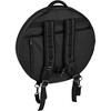 A low-key design is coupled with ultra-durable materials to make the Meinl Carbon Ripstop Cymbal Bag ideal for traveling through packed city environments to get to the gig or studio. The all black "carbon" exterior finish is made with strong 600D woven polyester ripstop. Extra threads forming a cross-hatch pattern add protection against rips and tears. This material is backed with a PVC lining to give the bag more structure and durability. Adjustable padded backpack straps with ABS ladder locks and chest buckle let wear the bag comfortably on back to keep hands free. These straps may be tucked into the large rear pocket when not in use. A thick, reinforced carrying grip gives the ability to grab the bag quickly. For extra storage, the rear side features a large zippered pocket where can stow spare parts, tools, accessories or sheet music. To get more use out of the exterior, the hi-hat compartment is equipped with a strip of heavy-duty webbed PP loops to attach a carabiner or any other clip. This is a great place to attach keys, a water bottle or quick access drum tools. Inside the main compartment, this heavily padded area holds cymbals up to 22” in diameter and includes four padded sewn-in cymbal dividers to prevent metal-on-metal contact.The bottom features an extra-wide, thick EVA lining to protect cymbal edges and extend the life of the bag. The exterior hi-hat compartment fits cymbals up to 15” in diameter and includes a padded cymbal divider as well as a quick access pouch that’s perfect for a hi-hat clutch or drum key. All interior surfaces are made with 420D polyester woven fabric with PU coating for abrasion resistance.Getting into the bag is made easy with large metal zipper pull handles. These coiled nylon zippers are strong and long-lasting while giving a smooth, quick feel when opening and closing compartments. Topping off the bag, a subtle Meinl logo blends in with the dark finish for a high-end, minimalist look that doesn’t stand out.