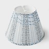 This pleated cotton lampshade features a hand-block printed geometric design in shades of blue and gray, bringing artisanal character to any space. The lightweight cotton fabric allows light to filter through softly, creating a warm and inviting glow. With its pleated construction and timeless print, this lampshade works beautifully with both modern and traditional décor, offering a functional yet decorative accent for any room.