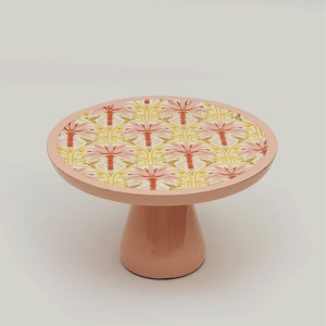 Featuring a blush floral enamel top and a warm mango wood base, it’s perfect for showcasing cakes, pastries, or cheese spreads.