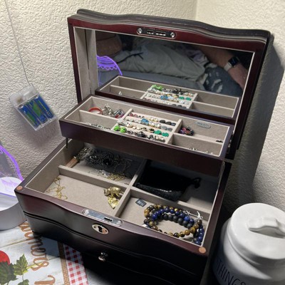 I was looking for a medium sized jewelry box that was not too expensive This one is perfect - well made and stylish. The bottom compartment has open storage that I can use for watches and bangle bracelets. The top portion locks so you can secure precious jewelry. Highly recommend this product!