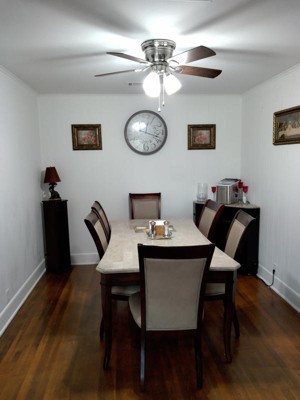 [This review was collected as part of a promotion.] I received this beautiful Melis 35.6 Inch 7 Light Chandelier With Clear Glass In Black. I finally got it all put up a few day ago. I absolutely love this chandelier. My dining room looks so fancy and beautiful now. I love that it is dimmable and adjustable. It reminds me of vintage candle stick lighting. I love that I can use this on a sloped ceiling also. It really updates my whole dining room and living room. It is well worth the cost. The finish is absolutely gorgeous and looks good with any decor in the room and wall colors. I have received so many compliments and the extra lighting in my dining room is wonderful. I highly recommend this beautiful Chandelier for every dining room.