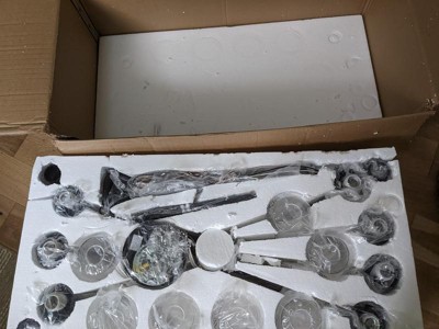 [This review was collected as part of a promotion.] Melis 35.6 Inch 7 Light Chandelier with Clear Glass in Black arrived well packed in one box. Great black finish was what I was looking for to fit with a black frame windows. Works well with other black finishes in the house.