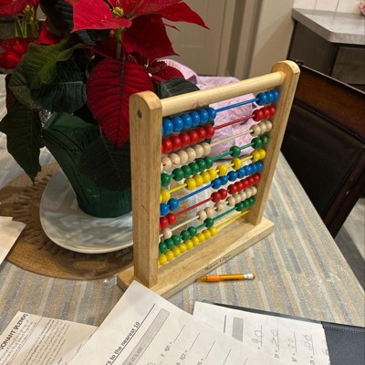 - Traditional abacus wooden bead counting frame with brightly colored wooden beads