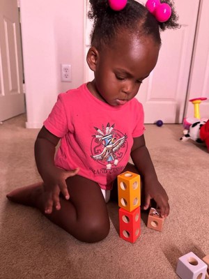 [This review was collected as part of a promotion.] My daughter absolutely loves these blocks. They’re super durable and safe for her age. When building towers they’re easy to assemble and keeps her busy for hours.!!