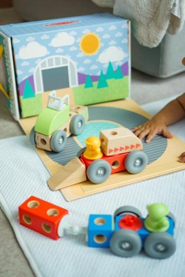 - Melissa & Doug Blockables™ are connectable, stackable, and playable solid wood building blocks, perfect for little hands and big imaginations; special connectors let kids 2 and older easily snap together smooth, colorful blocks to create fun vehicles to play with, or combine to build their own silly and cool creations