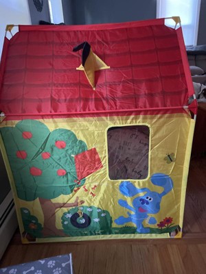 - Roomy and sturdy nearly 4-foot-tall Blue’s House (from Blue’s Clues & You!) indoor or outdoor fabric tent playhouse with vibrant, full-color exterior artwork and storage tote