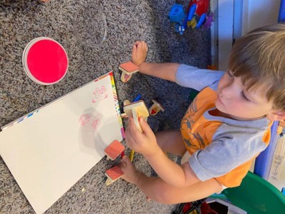 [This review was collected as part of a promotion.] You always know you're getting a quality item when you purchase Melissa & Doug. The Blue Clues stamp set was a fun activity and the large wooden stamps were easy for my toddler to grip and use. We loves the variety of stamps and quality of the stamp pads. I'll be looking for more stamp sets from Melissa & Doug.
