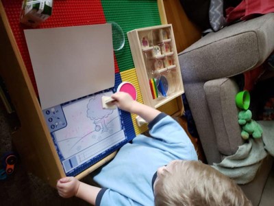 [This review was collected as part of a promotion.] My son loved this! He was able to work on his writing AND have fun with all the stamps and characters. It's now our morning toy as we get ready for school!