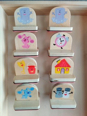 - Create countless Blue’s Clues & You! adventures with this 15-piece wooden handle stamps set with activity pad