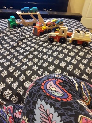 I stumbled on your wooden toys by accident. I've purchased several cars, trucks, a table top town and train...plus a few others. I still have more to purchase. Every Saturday morning the blankets come off the bed and up come the Melissa and Doug! I'm so pleased with these toys because they aren't just toys. He finds learning is fun. BTW I had to buy my granddaughter the horse carrier because she couldn't tear herself away from her cousins! Your toys are durable, educational and well made. Thank you. PS Please make a police car with removable police man.