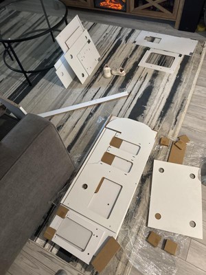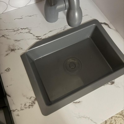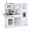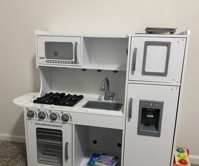 - Easy to assemble white marble-colored wooden modern play kitchen--roomy enough for multiple kids to play at once