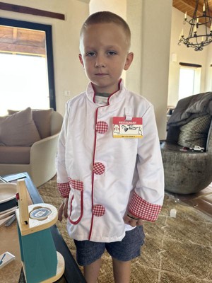 This chef costume is a delightful addition to any child's play kitchen, inspiring imaginative cooking adventures. Guests appreciate its adorable design, quality materials, and included accessories like measuring spoons and a name tag. Many children enjoy wearing it for role play, cooking with family, or even as a Halloween costume. The outfit fits well and is durable, making it a favorite among young aspiring chefs.