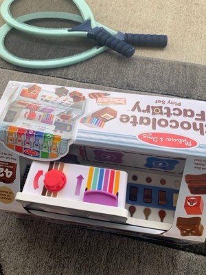 - Chocolate Factory Play Set is a great way to encourage fine motor, number, and matching skills, as well as color recognition, communication, cooperative play, and narrative thinking