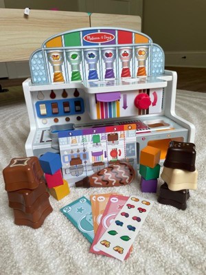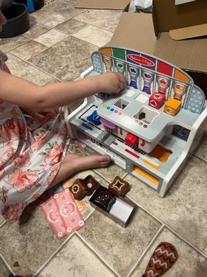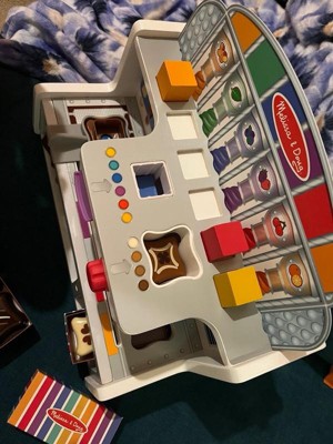 [This review was collected as part of a promotion.] My daughter LOVED this! We are big fans of Melissa and Doug toys as they are always incredibly well made, brightly coloured and highly interactive. She had fun pushing all the different buttons and switches, making different combinations of chocolates and pretending to eat her creations. It was very simple to assemble and incredibly user friendly for little ones!