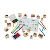 Create colorful scenes filled with things that go and exciting adventures! Easy-to-grip, high-quality, wooden-handled rubber stamps and vibrant markers are perfect for telling stories, creating art projects, cards, decorating notebooks, and more! The 38-piece set includes 30 exciting vehicle stamps (emergency, trains, construction, and community), two two-color washable ink stamp pads in brown, green, blue, and red, and six colorful markers to fill in scenes. Encourage color recognition, patterning, memory skills, and fine motor development, as well as creativity and storytelling!