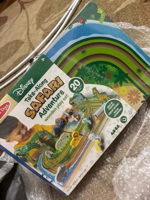 [This review was collected as part of a promotion.] I received this Melissa and Doug Disney take along Safari adventure wooden playset for free in exchange for my honest review. I was very impressed with the quality of the wooden pieces and love that it allows our child to work on their motor skills while having fun. These pieces are big enough that there isn't a choking hazard and we feel that our kid easily is able to figure out how to use this product. We gifted this to them for their birthday and they played for hours! Very happy with this product!!!