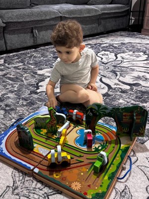 [This review was collected as part of a promotion.] Our Favorite Educational Toy! This wooden jungle-themed track set is an absolute hit in our home! My 3.5-year-old son plays with it every single day. The colorful cars, animals, and engaging layout spark his imagination and help develop fine motor skills and focus. The pieces are sturdy, well-made, and just the right size for little hands. I also love that the board folds up, making it super easy to take on the go. Highly recommend it for curious and active toddlers!