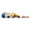 Get constructive play rolling with this heavy duty wooden dump truck, flatbed trailer, and front and backhoe loader! The eight-piece set includes four wooden construction pieces to scoop, haul, and dump, and a wooden road barrier to add to the construction site. The bed of the truck tilts, the trailer can detach from the truck and has a fold-down ramp, and the loader arms and buckets lift and scoop! All three roll smoothly on sturdy wheels and are easy for kids three and older to grasp and maneuver. This classic vehicle set helps promote coordination and fine motor skills, and encourages imaginative play.