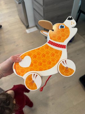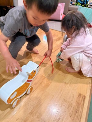 [This review was collected as part of a promotion.] Such a fun and clever toy! This wooden pup rolls along on a leash, comes with a little bag of wooden treats, ‘eats’ them, and then ‘poops’ them out as you walk it. Great for imaginative play and teaching kids responsibility in a playful way.