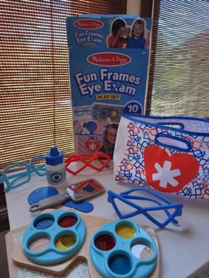 - See how fun it is to get or give an eye exam and to try on glasses with the Melissa & Doug Fun Frames Eye Exam Play Set