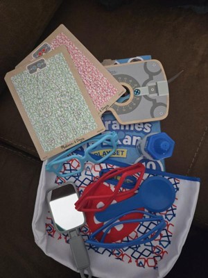 [This review was collected as part of a promotion.] Mellissa and Doug did it again! I love all of their educational toys for my kids and for my students. It is a brand that I trust and it honestly helps with my students with developmental delays. My students love playing with these kind of toys. It’s great for social emotional activities that we do in group centers. This set of fun frames eye exam is so adorable. It comes in a travel bag that is perfect for easy clean up. It comes with the cutest eye exam kit and three glasses that the patient can choose to wear. It is a great toy set!