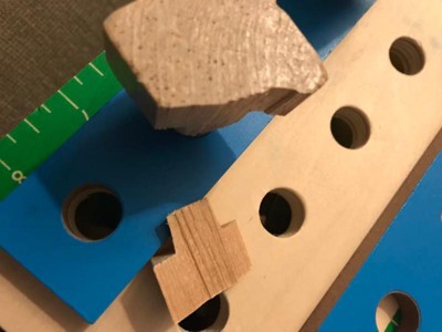 - Wooden tool bench with kid-sized wooden tools and building pieces to "saw" and connect