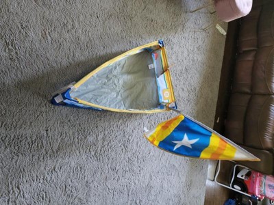Let imaginations set sail and explore pretend play boating adventures anywhere, anytime with this easy-to-assemble sturdy tent-fabric sailboat! The play set includes a foam rudder and anchor, a removable, reusable sign to name the vessel, and a collectible Let’s Explore™ medallion. Special features include extra-sturdy material for the floor, sides, and sail, and realistic, detailed artwork. There’s plenty of room for multiple kids to play: Assembled boat is approximately three feet high, three feet long, and two feet wide. Pieces store in a handy take-along storage tote. Boat does not float; do not use in water. Let’s Explore™ encourages kids to connect with the natural world through imaginative play! Discover the joy of outdoor adventures that instill curiosity and confidence while inspiring kids to say, “Let’s Explore™”!