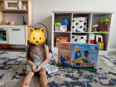 [This review was collected as part of a promotion.] I received the Melissa & Doug Lex Explorer Sailboat Playset for free through BuzzAgent in exchange for an honest review. My 3 year old daughter was excited when she saw the box for the boat. I told her we could set it up and we began the process of unboxing. Once I pulled the product out of the box, I noticed there was an excess of packaging for the amount of actually inside. I proceeded to take out the directions and make sure I had all of the pieces. It appeared we were missing two clips which likely help hold the sail in place. I'm not exactly sure what those pieces were since I did not have them. I decided to set up the boat without them. What I assumed would only take me 5 minutes to set up, seemed to almost take me 20. I had trouble with the plastic slats and with attaching the corner pieces. They do not want to stay together. When I finally finished I was not impressed. However my daughter was excited to hop into the boat! She played for a little while but it wasn't long before she asked me to join her. Now obviously this is made for a child So I would not fit in there. But even though my daughter is of average height for her age, I do not think that another child could safely fit in there. All in all, the Melissa & Doug Let's Explore Sailboat Playset is a cute idea with poor execution. The trouble with missing parts and keeping the pieces attached in addition to the lack of room in the boat keeps the product from having a lasting play effect.