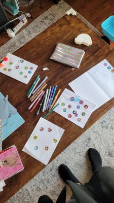 [This review was collected as part of a promotion.] They arrived in perfect shape. Great job on packaging. My little girl loves stickers and has a ball with this. Was happy to give her a sticker stamper instead of an ink stamper, much cleaner. The stamper is easy for her to hold and refill.