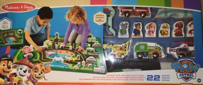- Act out PAW Patrol™ missions on the Adventure Bay activity rug with wooden play pieces and vehicles