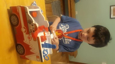 [This review was collected as part of a promotion.] This is a multifunction toy for children to get hours of play time. 14 different pieces. Helps build learning skills,while playing with fun paw patrol Marshall's character. It is a sturdy wooden rescue caddy to take any where. Lots of fun using each of the components. I recommend for little ones.