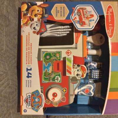 - Race to the rescue with the take-along wooden caddy shaped like Marshall's PAW Patrol™ rescue truck filled with first aid essentials