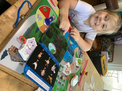 [This review was collected as part of a promotion.] My daughter loves this toy. It comes with the search and find game and a small search and find activity booklet. The game itself is fun for my 3 year old. She loves rescuing the animals with the helicopter hook. It's great for developing hand- eye coordination! However, I do wish there was a more mentally stimulating element to the game, such as needing to move a piece around the board and landing on animals to rescue. Then you could practice counting as well. I liked how all of the pieces fit within the game board itself. As for the activity booklet, my daughter enjoyed it as well and it was easy for her to play by herself. The booklet is small and easy to pack into a diaper bag. However, I wish there was a pocket that the flashlight could be stored in so it doesn't get lost. Overall, I think this game is worth it, but it could use a few tweaks.