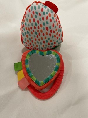 [This review was collected as part of a promotion.] This strawberry take along toy is so cute!! I love that it has a soft part, a mirror and a teething part. My baby loves this thing and I feel safe giving it to her. Fantastic product!